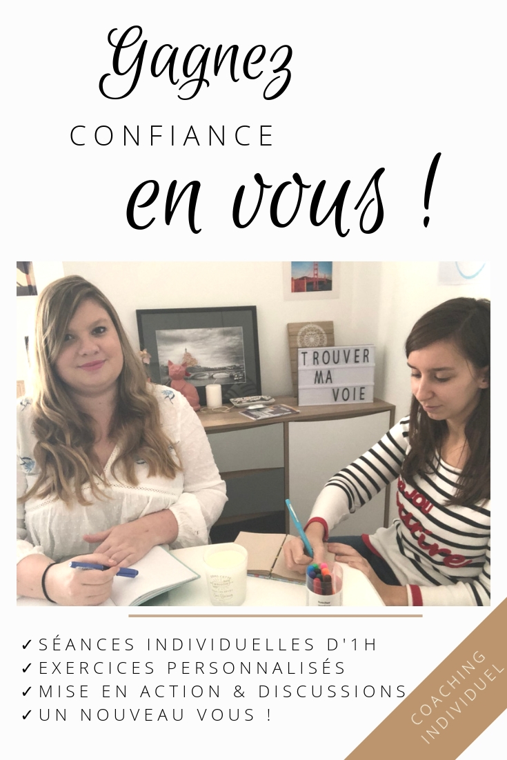 – Le programme “Gagnez confiance en vous” est un accompagnement individuel de coaching en face à face, pour discuter ensemble de votre situation, vous permettre de réfléchir différemment sur vous-même en vous posant les bonnes questions et vous donner l’impulsion et la méthode pour réussir à mettre en place des actions concrètes dans votre vie.